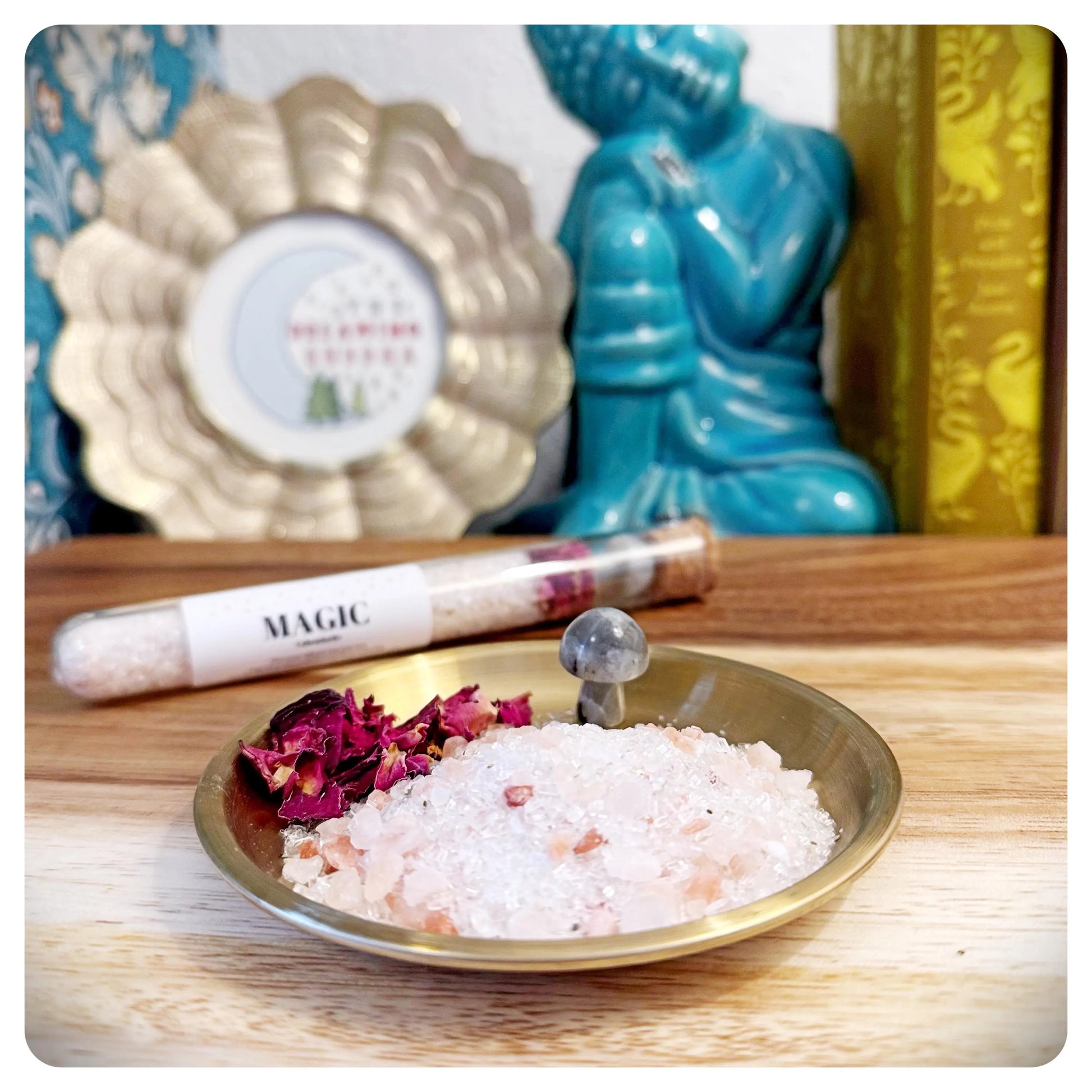 . Epsom salt . Himalayan salt . Essential oils . Dried flowers . Planet friendly glitter .